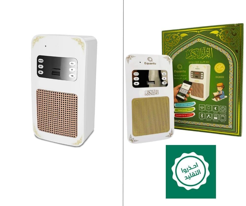 جهاز الفيش المطور لتشغيل القران الكريم يمكن التحكم به عن طريق الريموت او عن طريق التطبيق الذكي ايفون اندرويد داخل المنزل او المكتب تشغيل بسيط و جودة صوت عالي ونقي المواصفات : • القران كامل لمجموعة متميزة من المشايخ ( السديس - الشريم - المعيقلي وغيرهم الكثير ... ) من اشهر القراء من خلال التلاوات المرتله • تفسير القران الكريم لكل آية • ترجمة لأشهر اللغات • أختيار سريع للسور والآيات مع ازرار خاصة لأشهر الادعية والاذكار والرقية الشرعية • يحتوي على مجموعة من الاحاديث كصحيح البخاري ومسلم • شاشة رقمية لعرض التوقيت والمحتوى الرقمي • تقنية بلوتوث لتشغيل الملفات ام بي ثري ويمكن استخدامها كمكبر صوت للجوال محتويات الكرتون : • كرتون • جهاز مصباح القران • ريموت تحكم • بطاريات ريموت
