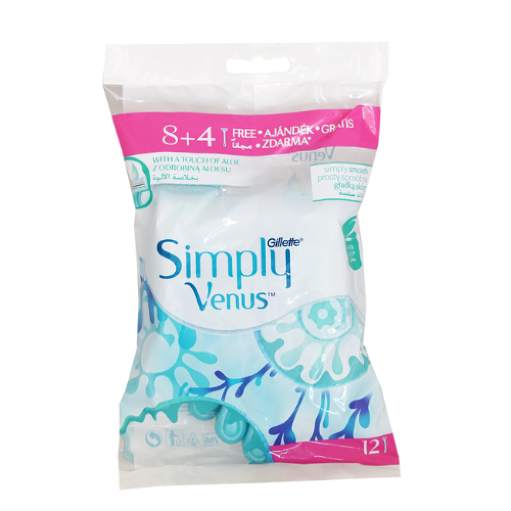 شفرات Simply Venus 2 التي يمكن التخلص منها هي شفرات Venus الأكثر كلفة، مع شفرات وشريط مرطب لسهولة الانزلاق