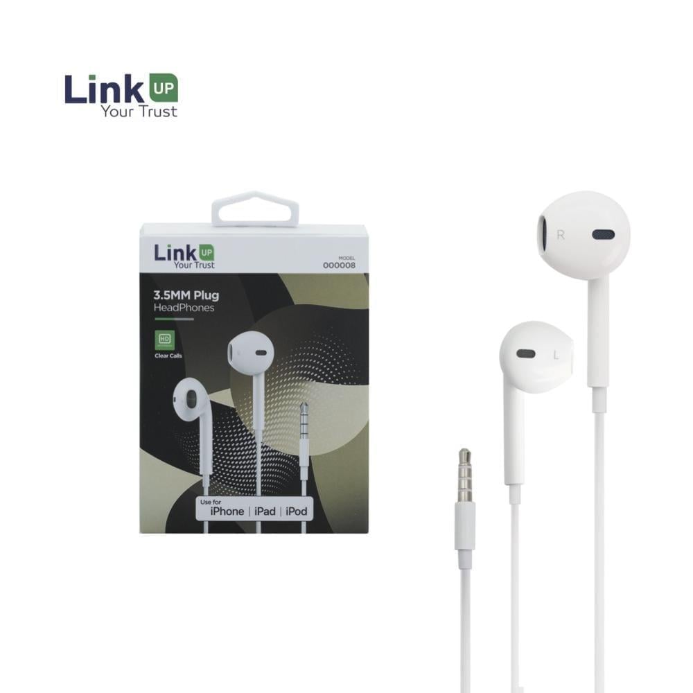 احصل على تجربة صوتية غامرة مع سماعات LinkUP 3.5MM المصممة لتوفير راحة مثالية وجودة صوت نقية تناسب مكالماتك وموسيقاك.