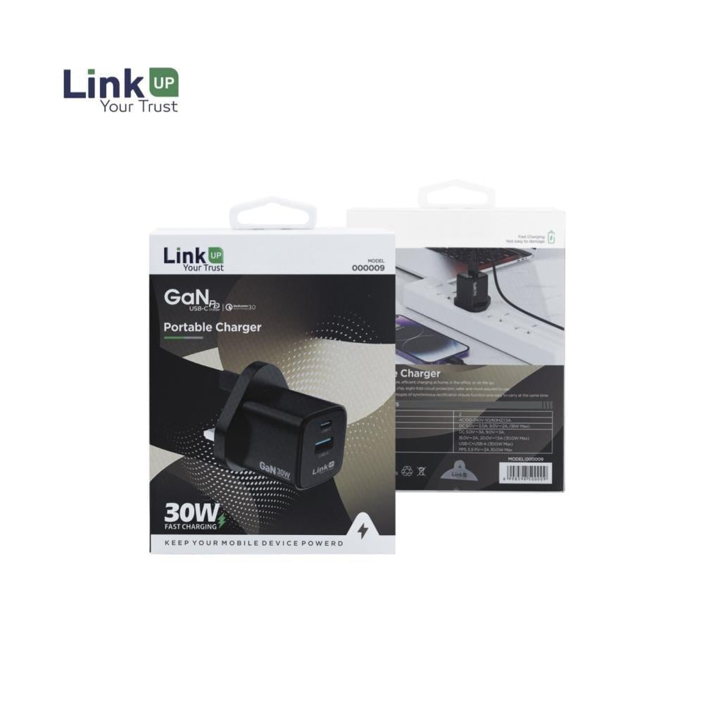 شاحن LinkUP GaN 30W سريع ومحمول