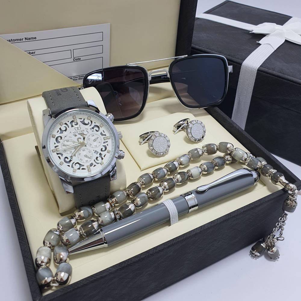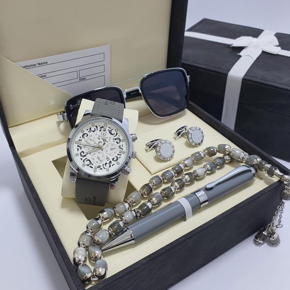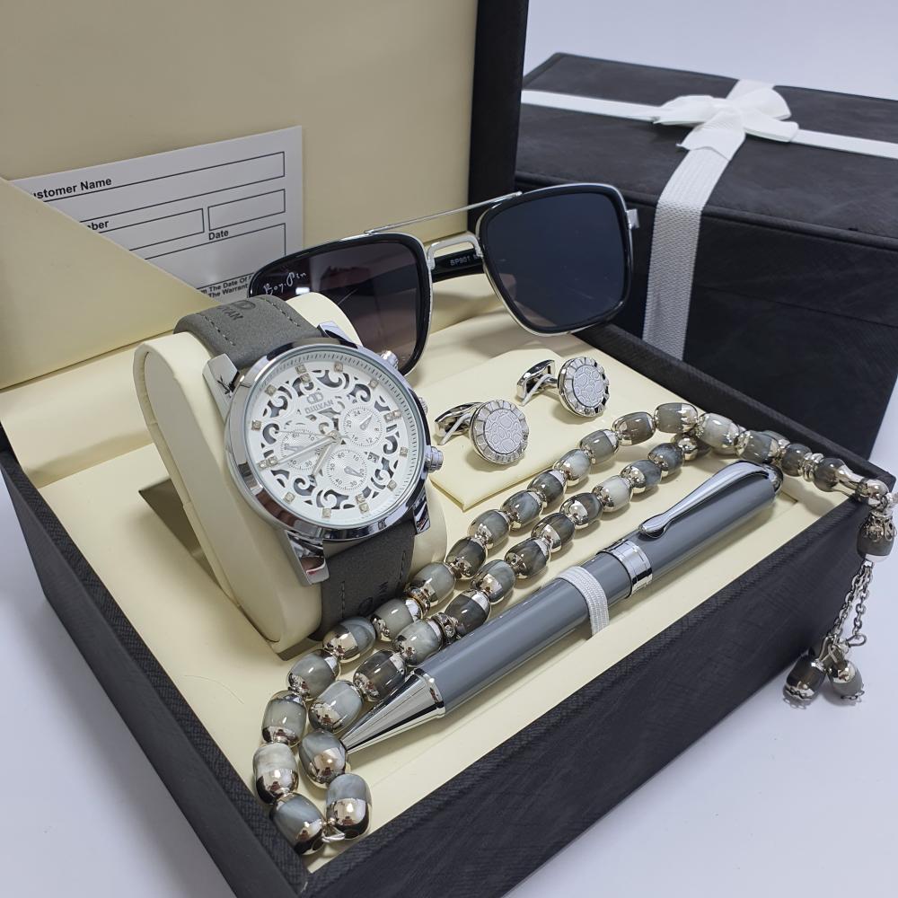 طقم رجالي اصليه بضمان سنه ساعه كبكقلمسبحهنضارهعلبه فخمه مع شريطه وكيسافضل هديه🎁تقدميها برمضان لمن احببت