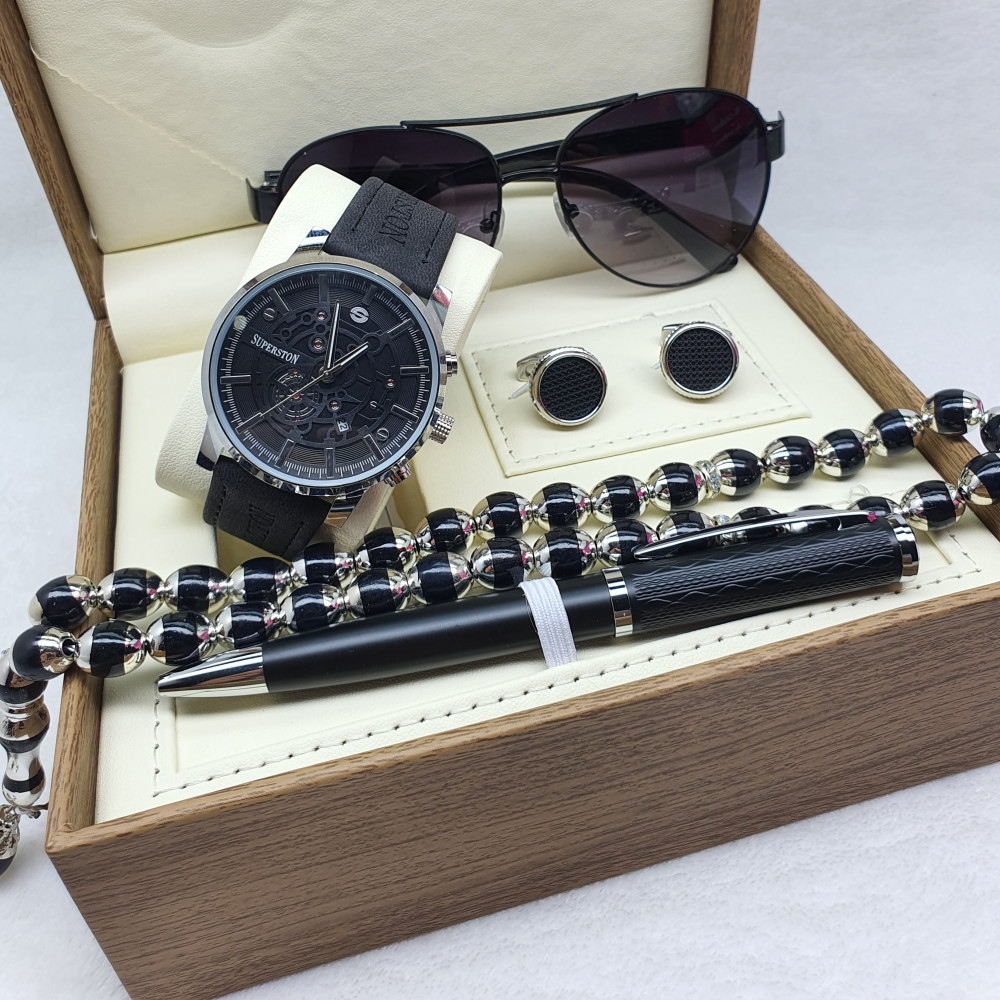 طقم رجالي 4 قطع اصليه ساعه كبك نضاره سبحه