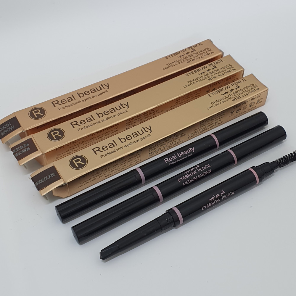 قلم حواجب ثلاث درجات ريل بيوتي شكلت مديم براون دارك براون