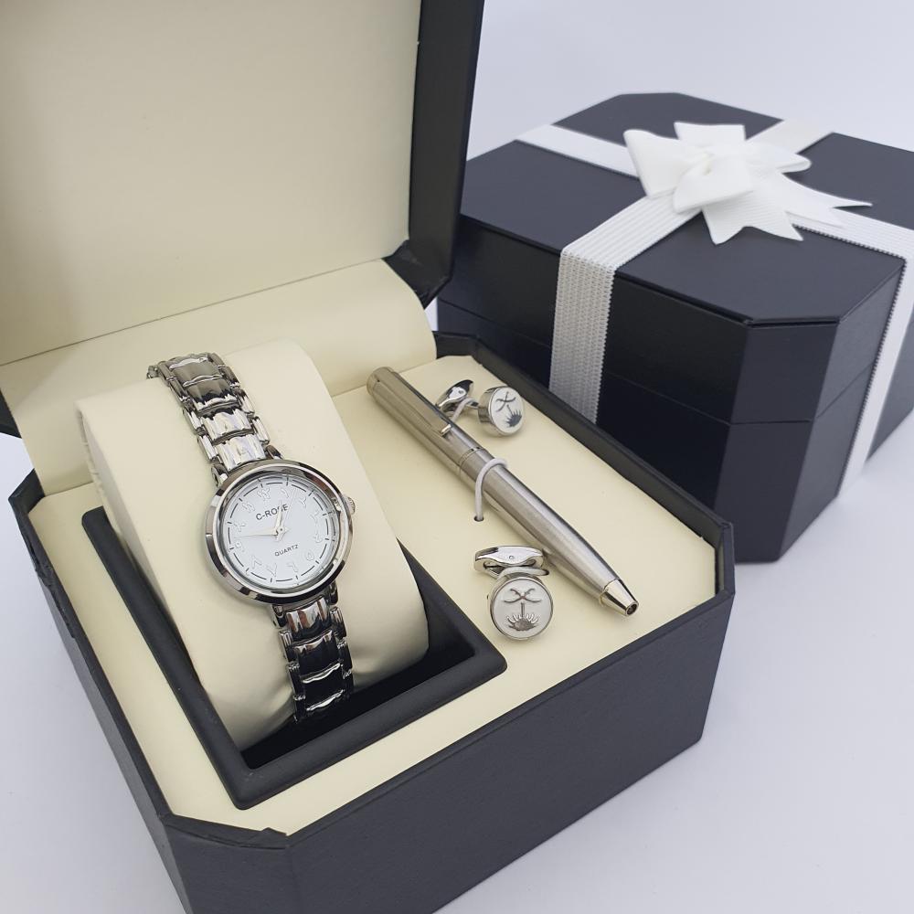 طقم ولادي مكون من ساعه وقلم وكبك علبه بتغليف روعه