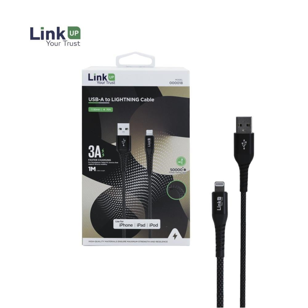يقدم LinkUp LightningCharge تجربة شحن مثالية لأجهزة iPhone و iPad و iPod، حيث يتميز بسرعة شحن تصل إلى 3A، مما يمكنك من شحن جهازك حتى 70% في 30 دقيقة فقط. الكابل مصنوع من ألياف النايلون المضفرة لضمان المتانة ومقاومة التآكل، مع قدرة تحمل تصل إلى 50,000 انحناء، مما يضمن لك استخدامًا طويل الأمد بدون تلف.